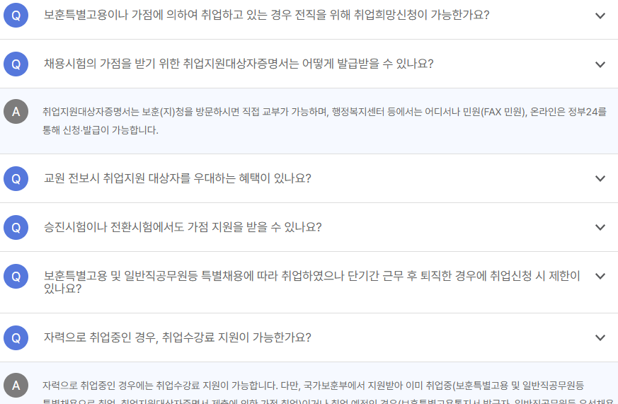 질문2 채용시험의 가점을 받기 위한 취업지원대상자증명서는 어떻게 발급받을 수 있나요?