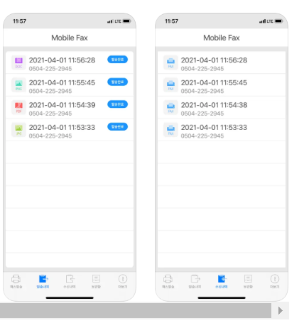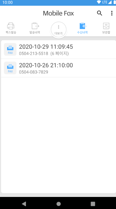 step2. 모바일 팩스 어플의 '수신내역' 에서 수신된 팩스 확인 가능합니다.