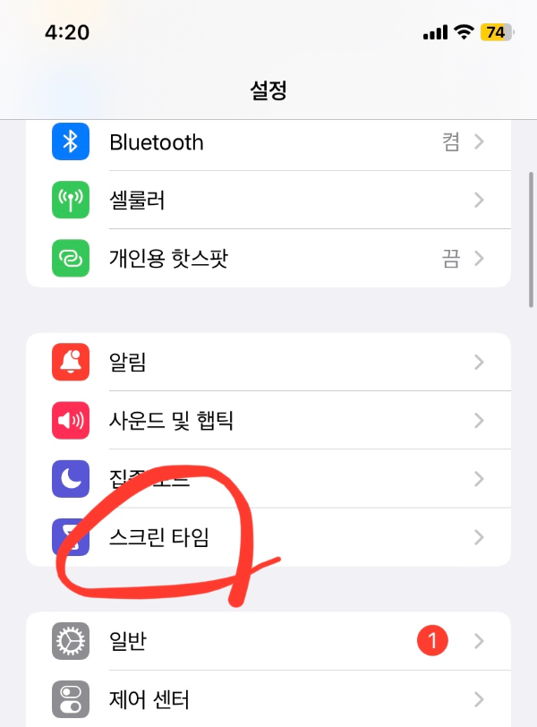 STEP1. 아이폰 설정 - 스크린 타임으로 들어갑니다.