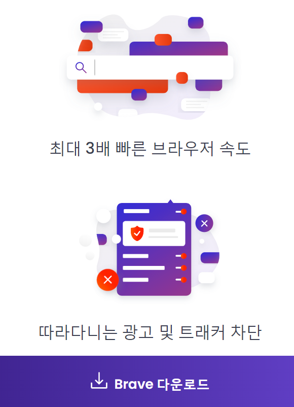 여기서 Brave 브라우저 최신 버전을 다운로드하여 광고 및 트래커 차단 기능을 마음껏 이용하세요. 웹의 미래에 대한 깊은 고민으로 완전히 새롭게 탄생한 브라우저입니다.